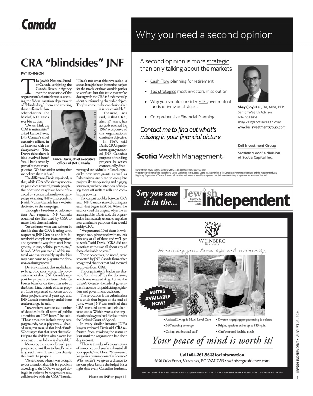 CRA blindsides JNF (Jewish Independent)