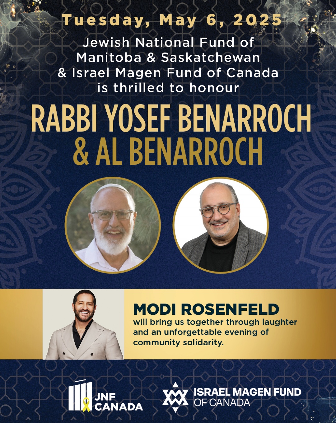 Join us for the 2025 Negev as we honour Rabbi Yosef Benarroch and Al Benarroch, two pillars of our community. We are pleased to co-host this event with the Israel Magen Fund of Canada. Winnipeg Negev Dinner 2025